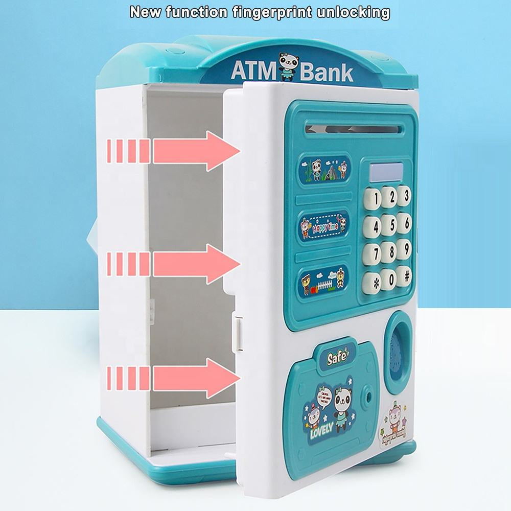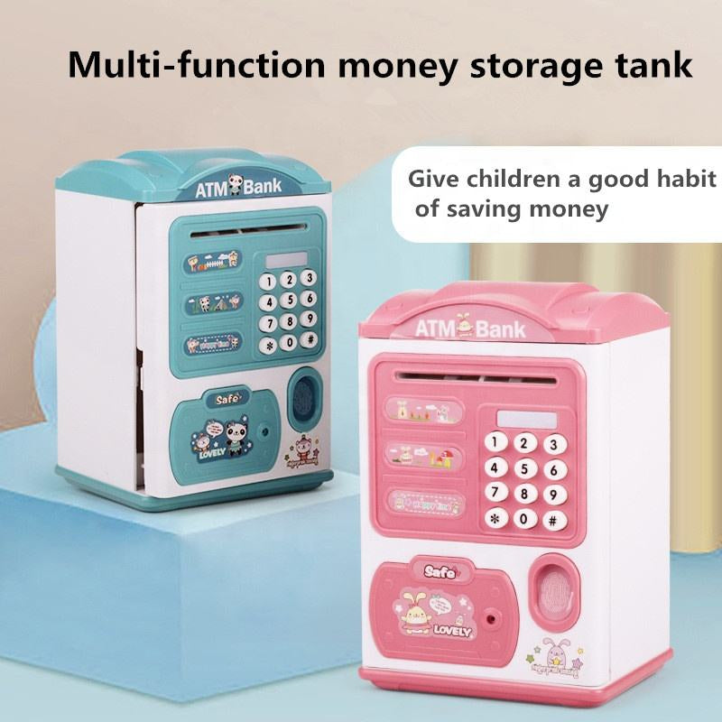 ✔️ Fingerprint Lock System – Secure and realistic ATM experience ✔️ Digital Password Protection – Extra safety for coins and notes ✔️ Coin & Cash Slot – Accepts both paper money and coins ✔️ Automatic Note Absorption – Insert paper money and watch it pull inside ✔️ LCD Screen Display – Shows balance and transaction like a real ATM ✔️ Durable & Safe Material – Non-toxic, child-friendly design ✔️ Educational & Fun – Builds saving habits in kids ✔️ Best Gift for Kids – Perfect for birthdays, parties, or rewards