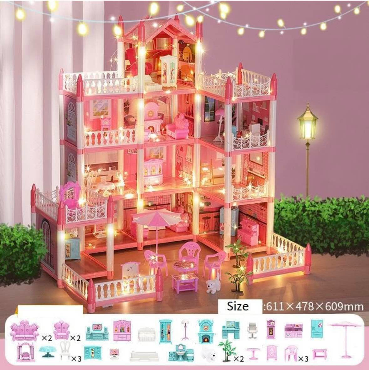 Luxury Multistory Dollhouse with Lights